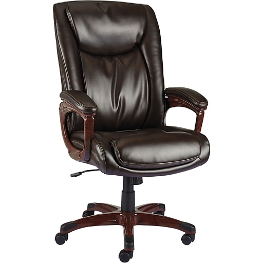 Mostly the chairs need to be. Enter your email address to receive alerts when we have new listings available for brown leather executive office chair. Search newegg.com for computer chair. Ovios office chair,leather computer chair for home office or conference.swivel desk chair with chrome base and arms. Biscuit brown bonded leather chair with wood components in walnut color for softness and a professional look.